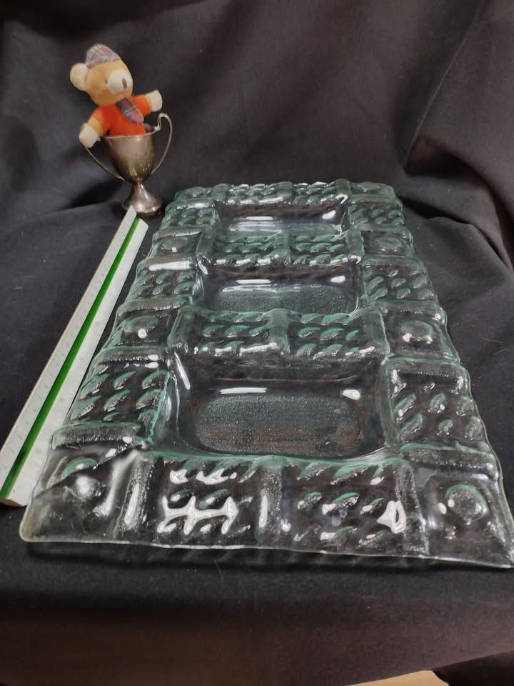 RECYCLED GLASS ART HAND MADE TRAY 400MM LONG