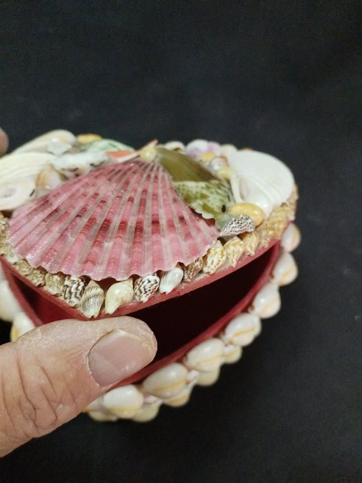 Vintage Heart-Shaped Seashell Jewellery Box – Coastal Decorative Collectable